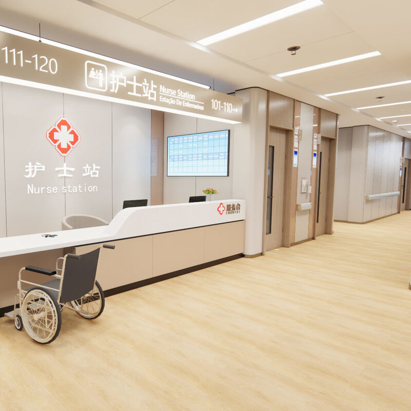 • ملخص الخصائص: مقاومة للمواد الكيميائية (مطهرات/فاعلات) ، مقاومة للماء ومقاومة للارتداء → تناسب غرفة العمليات / ممرات الطوارئ. كلاهما مناسب للبيئات الطبية ذات حركة المرور العالية.