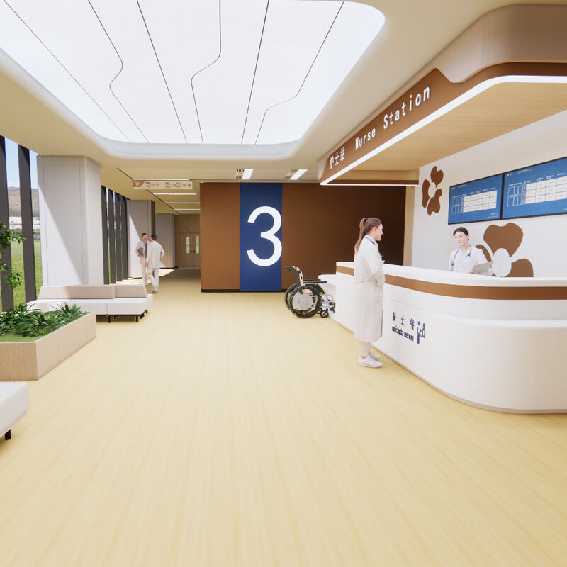 • LVT: مريحة، معزولة الصوت، سهلة التنظيف ومضادة للبكتيريا → مثالية للأقسام / مناطق الانتظار.