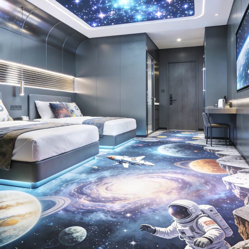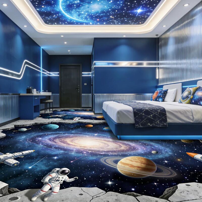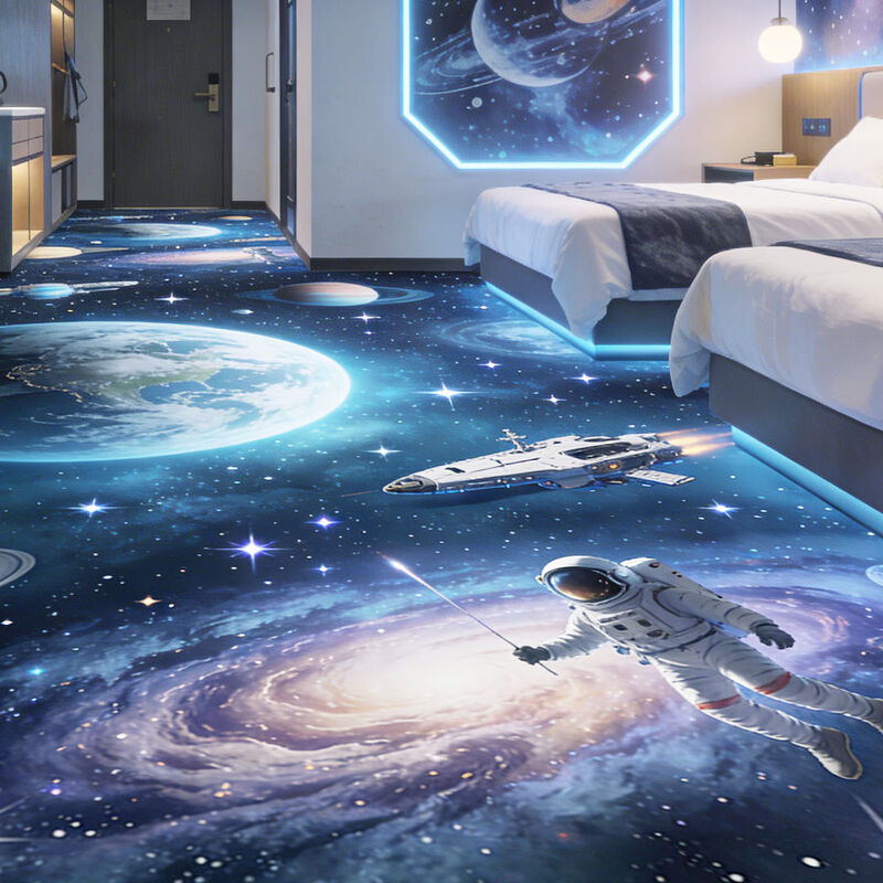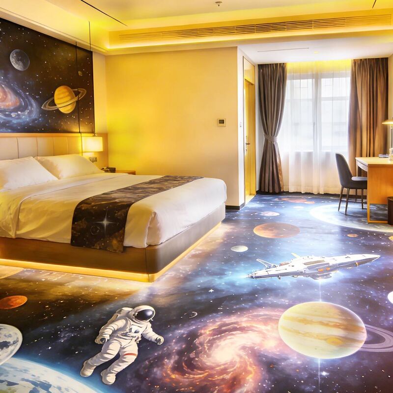 ملصقات أرضيات ثلاثية الأبعاد قابلة للتخصيص تدعم تصميماتك الخاصة مع طباعة عالية الدقة؛ تتميز بهيكل متعدد الطبقات لتوفير الراحة الناعمة، ومقاومة التآكل، ومناسبة للفنادق ومراكز التسوق والمساحات التجارية المختلفة.